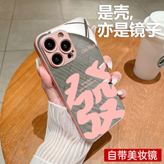 发财酷图适用苹果17promax手机壳14新款仙女iPhone16镜面13玻璃12高级感镜子15奢华补妆全包plus创意小众防摔