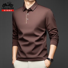 罗蒙春秋季男士长袖t恤高弹中年男装免烫商务休闲高端打底Polo衫
