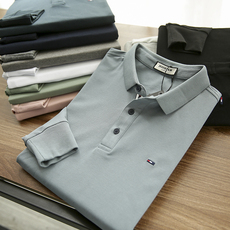 奥莱折扣蒙口polo衫男轻奢长袖体恤秋冬新款纯棉商务时尚翻领衬衣