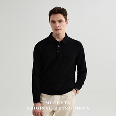 【持久如新】柒牌男士polo衫长袖新款新疆长绒棉休闲商务T恤