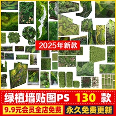 高清PS绿植贴图素材立体垂直绿化植物墙贴图效果图PSD分层源文件