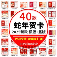 2025年蛇年新年贺卡模版欢度新年喜迎新春贺卡PSD/PS设计素材