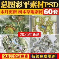 2025ps园林景观彩平图素材psd植物平面树木草坪草地花卉铺装材质