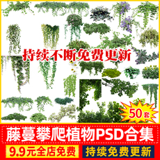 PS藤蔓爬藤藤本植物 攀缘攀爬类紫藤爬山虎景观效果图PSD免抠素材