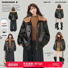 2026冬季皮毛一体机车服洋气颗粒绒羊羔毛休闲PU皮衣短棉服外套女