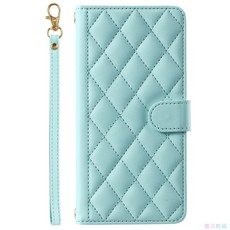 菱形浅绿适用GalaxyS24/S23/S22/S21/S20 ULTRA/Plus+/FE三星翻盖手机壳长挂绳S10/S9/S8/S7斜挎挂脖皮套
