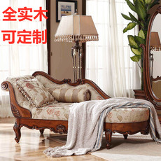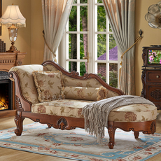 美式贵妃躺椅雕花欧式布艺懒人贵妃榻卧室实木美人榻客厅单人沙发