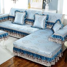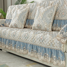 沙发垫四季通用布艺防滑蕾丝裙边客厅欧式夏季坐垫靠背扶手巾枕套