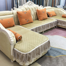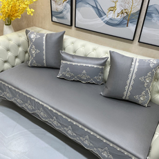 欧式皮沙发垫凉席通用高档防滑夏季蕾丝冰丝布艺客厅贵妃套罩定制