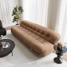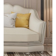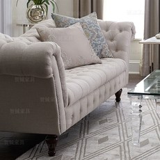 美式拉扣布艺弧形沙发米白色欧式三人位沙发大小户型亚麻布沙发
