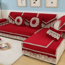 结婚红沙发垫秋冬喜庆欧式轻奢毛绒防滑布艺沙发客厅通用