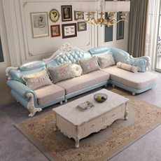 法式田园风提花布艺沙发组合2.4M实木雕花客厅家具欧式沙发