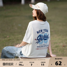 品牌折扣~美式宽松纯棉短袖T恤男女情侣百搭印花休闲上衣重磅潮流