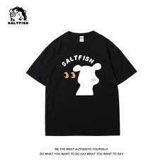 SALT 2025侦探小熊落肩T恤男女夏季卡通可爱纯棉短袖百搭情侣上衣