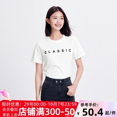RUBBIT夏季新品 穿不腻小条纹tee~时髦洋气印花短袖T恤女纯棉百搭