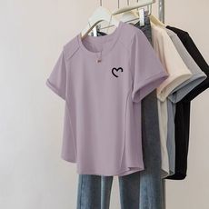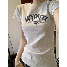 百搭短袖纯棉单边开叉女士潮流t恤衫女新款夏季印花ins大码上衣服