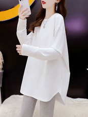 纯棉长袖T恤女春秋鲨鱼裤搭配的上衣遮屁股中长款撞色宽松打底衫