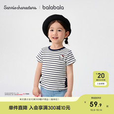 【纯棉条纹T恤】迷你巴拉巴拉男女童短袖T恤宝宝撞色条纹婴儿夏装