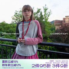 拼接宽松长袖T恤打底衫上衣POLO领假两件纯棉卫衣女2025新款秋装