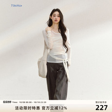 asomesome美式亨利领长袖t恤女秋微透防晒罩衫白色慵懒宽松上衣