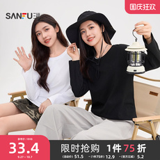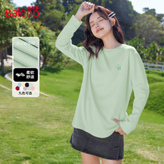 蕉下宽松长袖T恤女士上衣加长T恤衫秋衣百搭新款秋季白色打底衫