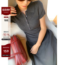 短袖针织衫女开衫女装2025新款夏季polo翻领薄款T恤灰色短款上衣