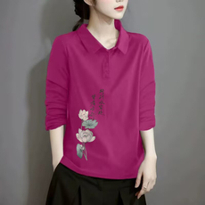 专柜品牌大码100纯棉百搭polo衫长袖气质t恤翻领显瘦洋气上衣女秋