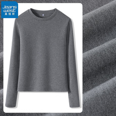 与竹100%纯棉男女款秋冬内搭白色上衣纯棉长袖t恤(礼盒装)