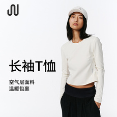 JUACTIVE白色圆领不规则运动t恤上衣女长袖宽松透气短款瑜伽服女