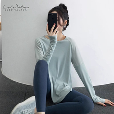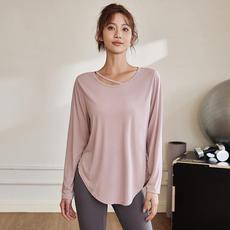 单侧开叉宽松休闲外穿春秋新款运动健身罩衫长袖T恤女瑜伽服上衣