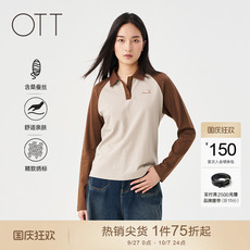 韩国代购ober golf高尔夫25秋半开翻领宽松中性风运动长袖T恤女式