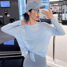 宽松运动罩衫女长款薄款健身长袖速干跑步套装瑜伽服T恤上衣夏季