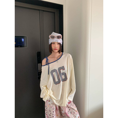 STILLYOU原创复古美式休闲运动polo领印花长袖T恤女宽松套头衫秋