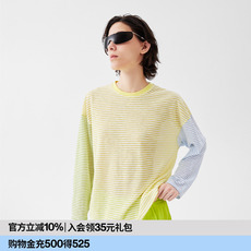 石墨烯混纺 半圆原创女装[运动]2025秋季宽松长袖条纹T恤女上衣