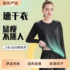 速干衣女防晒宽松大码跑步训练运动健身上衣登山长袖t恤瑜伽服