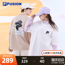 FILA FUSION斐乐潮牌短袖T恤男女款夏季休闲运动圆领情侣宽松上衣