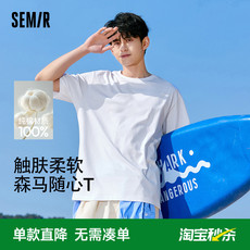 森马短袖T恤男装新款纯棉半袖情侣纯白圆领凉感白t休闲打底衫贴身