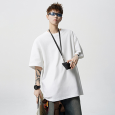 V37美式白色纯棉300g重磅落肩短袖t恤男2025新款秋季宽松半袖衣服