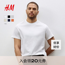 HM男装女装T恤秋季重磅纯棉打底衫休闲短袖男上衣0608945