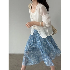 法式法国韩系温柔风碎花多层荷叶边半身裙女26夏季高腰不规则半裙