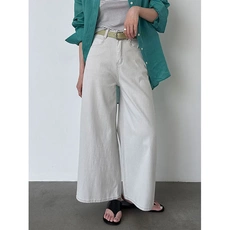 法式复古简约高腰显瘦阔腿裤配腰带女26夏季刺绣休闲牛仔裤X2