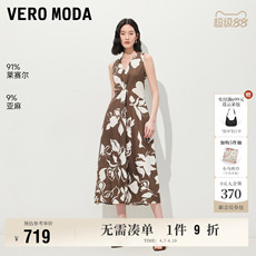 Vero Moda奥莱连衣裙春夏新款V领A摆印花度假风吊带长裙子流行