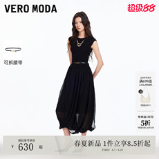Vero Moda奥莱连衣裙夏季新款圆领休闲拼接高级不规则裙摆裙子
