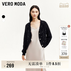 Vero Moda奥莱针织衫春夏新款含绵羊毛翻领烫钻百搭开衫优雅流行