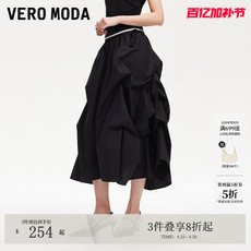 Vero Moda半身裙女夏纯棉松紧腰头褶皱大摆半裙325216006