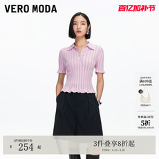 Vero ModaT恤女2026夏季新款荷叶边坑条一字两穿领口纯色针织上衣