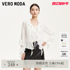 Vero Moda衬衫夏季微透袖口荷叶边系带衬衫优雅325105052