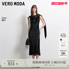 Vero Moda连衣裙2026夏季新款醋纤飘带鱼尾裙摆小黑裙32627A046