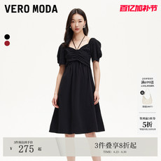 Vero Moda连衣裙夏季娃娃裙高腰泡泡袖短袖系带325161018