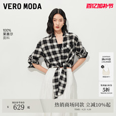 VeroModa衬衫女2026夏季新款含莱赛尔格纹两穿袖上衣326251002